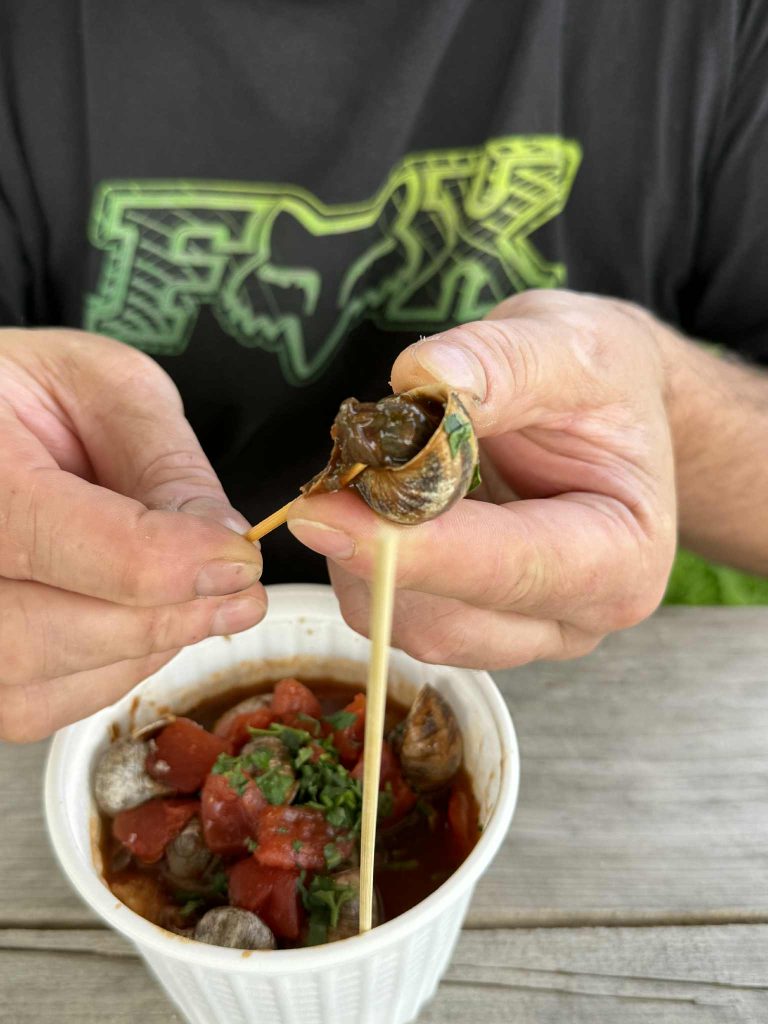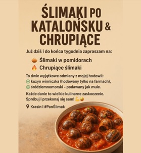 Ja biorę ślimaki po katalońsku to ślimaki podawane w skorupkach w pikantnym sosie z pomidorów, a Lucy ślimaki chrupiące w panierce z pysznym sosikiem 🙂 .