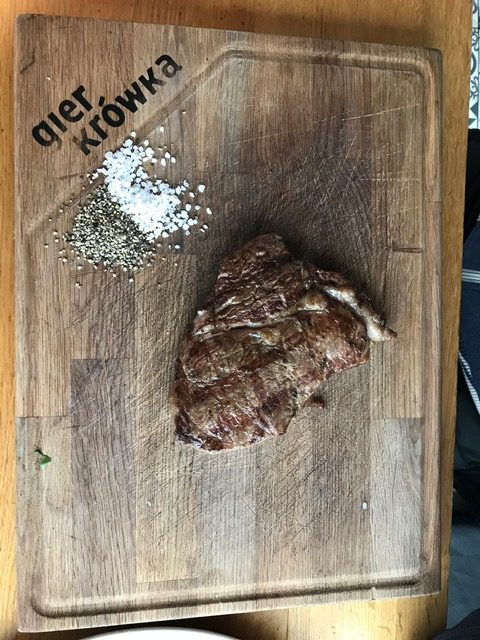 Zanim pojechaliśmy tropić „Wiedźmina” , Yenefer i Ciri to zainspirowani jednym z programów kulinarnych udaliśmy się do zachwalanej knajpki ze stekami i innymi pycha mięsiwami. No i tak oto wylądowaliśmy w „GierKrówce” Botaniczna 4a, Zawada, http://gierkrowka.pl/. Fakt opinia o tym miejscu doskonała a jedzenie jeszcze chyba lepsze 🙂 , spróbowaliśmy zachwalanych policzków wołowych pychota …, no i oczywiście jako mięsożercy musieliśmy spróbować steków, doskonale zrobione i po prostu przepyszne. Objedzeni jak przysłowiowe bąki, ruszamy w końcu do Hotelu Pod Figurą w Ogrodzieńcu, który będzie Naszą bazą do kolejnych wyjazdów w poszukiwaniu śladów Wiedźmina. Dzisiaj to chyba się Nam już nic nie chce, siedzimy w hotelowej restauracji pijemy winko i ustalamy plan na kolejne dwa dni 😉 .