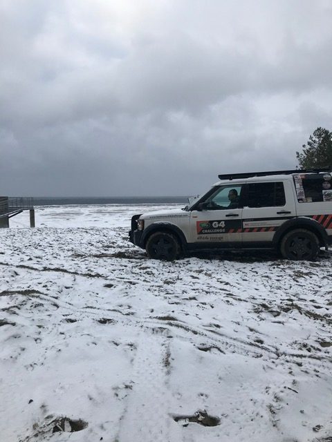 Lucy prosi mnie bym jakoś tak stanął ładniej do zdjęcia no to stanę i niestety czuję jak samochód zaczyna zapadać się w mokry grząski piach, sierść mi się zjeżyła na całym ciele, co się ruszę to coraz głębiej się zapadam, hmmmm chwila namysłu samochód w inne ustawienia, reduktor i zobaczymy, co będzie, powolutku się wygrzebujemy z tej piaskownicy, ale było słabo trzeba zawsze wierzyć w możliwości swojego samochodu – tak mawia Nasz kolega i ma rację.