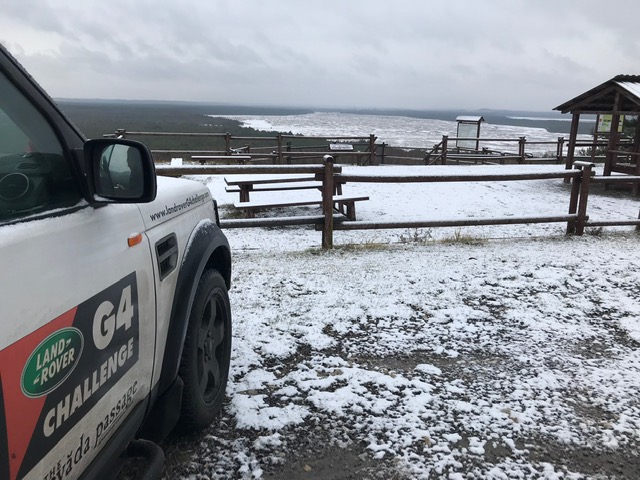 Jest -3 C i pada taki jakiś śnieg z deszczem wszystko zamarza jest potwornie ślisko a My brniemy dalej do przodu zwiedzać kolejne punkty zaplanowane na ten dzień. Tym razem jedziemy popatrzeć na Pustynię z innej perspektywy, czyli do punktu widokowego Czubatka. Kto nie wie tak jak My, jaki jest podjazd pod ten punkt niech sobie sprawdzi tym bardziej po zamarzniętej drodze, znowu sierść się jeży, ale wjeżdżamy dopiero na szczycie zaczynam się zastanawiać jak tam zjedziemy …