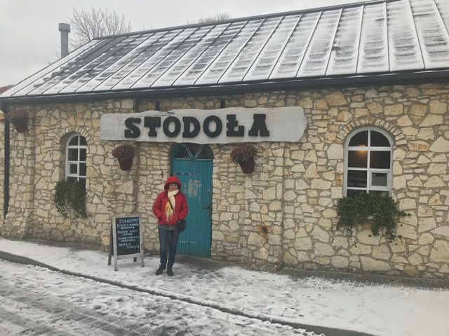 Dopiero teraz doświadczamy jak bardzo zmarzliśmy, wybieramy stolik najbliżej kominka i powoli się rozmrażamy. Ci, co nie prowadzą mają dobrze grzane winko no może nie jedno, przepyszna sałatka i super miła obsługa – polecamy. Zrobiło się całkiem ciemno wracamy do hotelu i gadamy oczywiście o „Wiedźminie”.